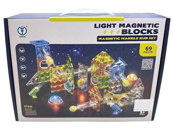 Adar Klocki magnetyczne ze światłem, 69 elementów Adar (627673)