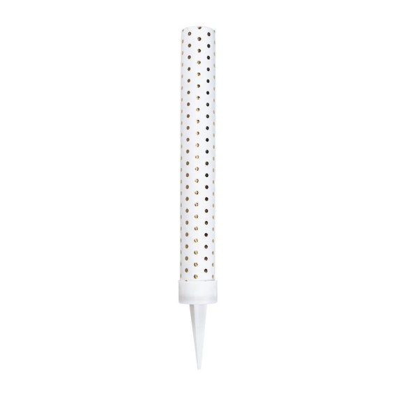 Fontanna to efektowny akcent, który dodaje wyjątkowego uroku każdej uroczystości. Jej stylowa, prosta forma i intensywne światło sprawiają, że doskonale nadaje się do podkreślenia momentu podania tortu podczas urodzin, rocznic czy innych ważnych wydarzeń. Dzięki wbudowanemu szpicowi fontanna utrzymuje się stabilnie, gwarantując bezpieczne i wygodne użytkowanie. Efekt palenia trwa około 40 sekund, tworząc spektakularny pokaz iskier, który z pewnością oczaruje wszystkich gości. Cechy produktu: Długość całkowita: 12 cm. Czas palenia: ok. 40 sekund. Kolor obudowy: biały ze złotymi kropkami. Kolor szpica: biały. Typ efektu: fontanna iskier. Przeznaczenie: do użytku wyłącznie przez osoby powyżej 18. roku życia. Zastosowanie: Uatrakcyjnienie momentu podania tortu na urodzinach i jubileuszach. Efektowny dodatek do tortów weselnych, rocznicowych i firmowych. Dekoracja na imprezach w lokalach gastronomicznych, salach bankietowych i klubach. Element pokazu w cateringu, prezentacjach artystycznych i barmańskich. Ozdoba tortów i deserów podczas wieczorów panieńskich, sylwestra czy bali. Fontanna wyróżnia się pięknym, minimalistycznym nadrukiem złotych kropek na białym tle. Produkt łączy elegancki wygląd z funkcjonalnością, dodając blasku i wyjątkowości każdej celebracji. Specyfikacja: Kolor: biały. Wymiary: 12 cm wysokości. Jedna sztuka w opakowaniu. Ostrzeżenie. Pojedyncze sztuki dopuszcza się do użytku wewnątrz pomieszczeń. Sprzedaż wyłącznie w opakowaniu fabrycznym. Wbić fontannę pionowo w miękki grunt lub inny niepalny materiał. Stać z boku, zapalić papier ochronny i oddalić się natychmiast na odległość co najmniej 1 m. Po wypaleniu fontanny przewietrzyć pomieszczenie. W przypadku niewypału nie dotykać produktu, a po 15 minutach włożyć go do wody. Do użytku tylko przez osoby powyżej 18 roku życia. KL. F1