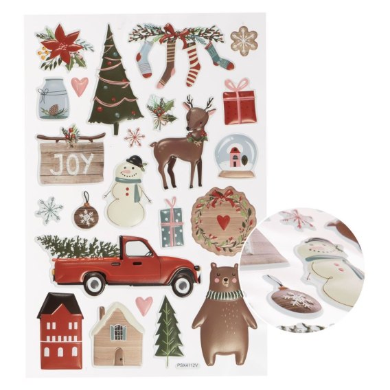 Naklejki z świątecznymi wzorami 3D dodadzą wyjątkowego charakteru kartkom, prezentom i pracom plastycznym. Dzięki efektowi 3D naklejki wyglądają przestrzennie i elegancko, a świąteczne motywy - takie jak choinka, uroczy renifer, prezenty, bałwanek czy czerwony samochód z choinką - wprowadzają do każdej dekoracji bożonarodzeniowy klimat.