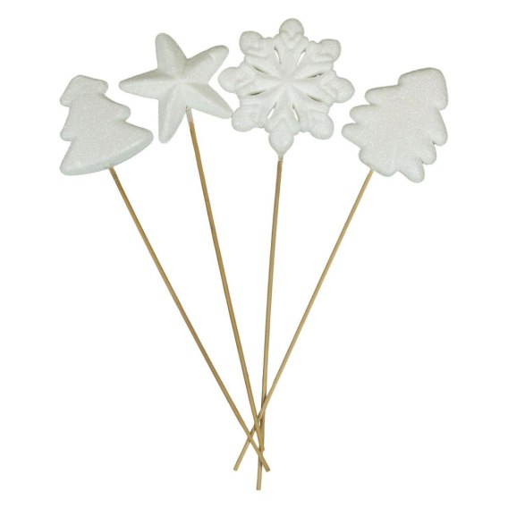 Zimowe wzory na piku to delikatna dekoracja, która doskonale sprawdzi się w aranżacjach świątecznych i zimowych. W zestawie znajdują się wzory takie jak choinka, gwiazda czy śnieżynka, umieszczone na długim patyczku, co pozwala łatwo wkomponować je w stroiki, donice czy bukiety. Prosty design w białym kolorze podkreśla zimowy klimat i dodaje dekoracjom lekkości oraz subtelności.