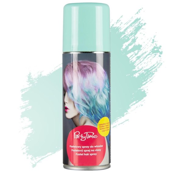 Spray barwiący włosy na pastelowy, morski kolor. Prosty i szybki w użyciu, daje wyjątkowy efekt na imprezę, urodziny, koncert. Umożliwia dopełnienie charakteryzacji bez potrzeby wykonania trwałej koloryzacji włosów. Kolor na włosach utrzymuje się do pierwszego mycia. Pojemność opakowania: 125 ml.