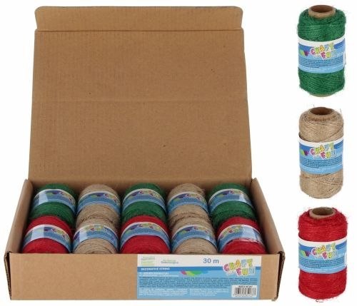Zalety produktu: Z pomocą Taśm, Sznurków dekoracyjnych CRAFT WITH FUN możesz zaprojektować własne ozdoby lub dekoracje. Są idealne do wykonywania wszelkich prac dekoratorskich, jak również do zabaw plastycznych czy wzbogacania ozdób wykonanych techniką decoupage. Używaj tych produktów w połączeniu z innymi akcesoriami oraz kompletami z serii CRAFT WITH FUN! W displayu znajduje się 12 szt. sznurków w kolorach: czerwonym, zielonym, naturalnym. Wymiary/Waga: wymiary produktu ( dł. x wys. x gł.) [cm]: szpulka-8x4x4, długość sznurka-30m, waga produktu [kg]: 0,04 kg. Wymiary opakowania( dł. x wys. x gł.) [cm] 22x4x17, waga produktu w opakowaniu (kg.) 0,46kg. Produkt jest wykonany ze sznurka. Przeznaczony dla dzieci w wieku: 3+. Pakowany w display po 10 szt. W kartonie 100 szt.