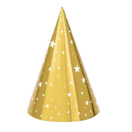 Czapeczki w Gwiazdki, złoty, 16cm_zestaw 6 sztuk