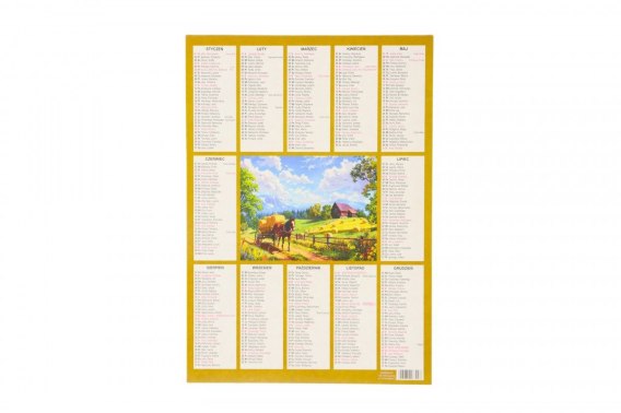 KALENDARZ plakietka Kalendarz plakietka jest drukowany na kartonie GC1, 250 g. w CMYK, lakierowany. Wymiar 240x340. Druk jednostronny, 12 miesięcy, 6 rodzajów zdjęć. Pakowany po 30 szt owijką, zbiorczo po 150 szt.