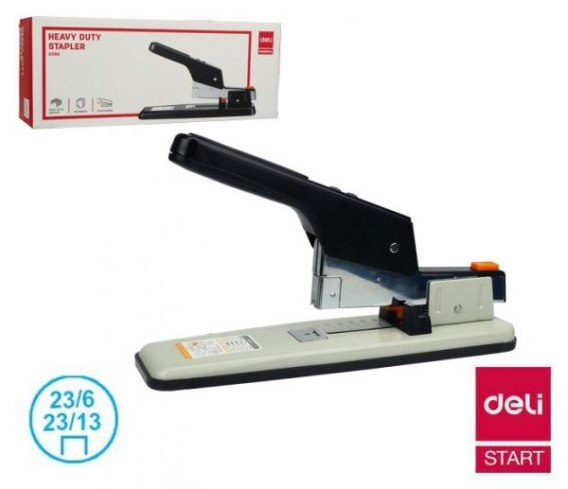 Mając na uwadze duże ilości zszywanego papieru marka Deli prezentuje swój model Heavy Duty 0390, którego elegancki, czarny, lśniący lakier ozdobi każde biurko. Produkt obsługuje do 80 arkuszy papieru, a komfort korzystania z niego jest niewyobrażalny. Trzeba samemu sprawdzić, by się przekonać! Gumowa nakładka na ciężką, solidną, metalową podstawę usprawnia pracę, zapobiegając ewentualnemu ślizgania się. Spód i góra ramienia ruchomego wyposażona jest w ochronne elementy, dzięki którym nasze dłonie zapomną czym są chociażby odciski.