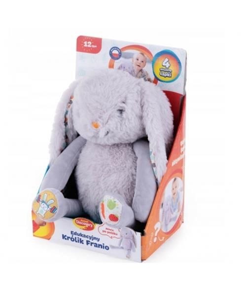 "Mądry króliczek opowie najmłodszym o podstawach dobrego wychowania, nauczy zwrotów grzecznościowych i udzieli cennych rad! Każda z edukacyjnych łapek Frania kryje inną niespodziankę. Jedna zachęca do gimnastyki przy dźwiękach piosenki, druga poświęcona jest witaminkom czyli pysznym owocom i warzywkom, trzecia mówi o króliczku, a czwarta, dzieli się z maluchami mądrymi radami. Łapki posiadają praktyczną opcję włącz/wyłącz. Franio wspaniale łączy naukę z zabawą, dzięki czemu wszystkie edukacyjne treści przekazuje dzieciom w miły i przystępny sposób. Produkt przeznaczony jest dla dzieci od 12 miesiąca życia. Cechy produktu: - wierszyki, piosenki, wesołe zwroty; - 4 aktywne łapki: mądre rady, gimnastyka, owoce i warzywa, królik; - zabawka mówi po polsku; - każda łapka z opcją włącz/wyłącz; - baterie: 3 x AAA (zawarte w zestawie); - wiek: 12m+."