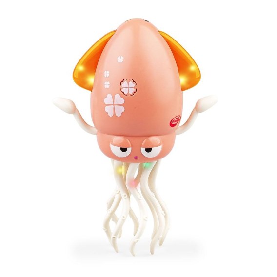 Na stojąco czy leżąco? Baw się tak jak lubisz, tańcząc razem z tym zabawnych głowonogiem! Gdy ustawisz kałamarnicę na jej ruchliwych odnóżach, będzie tańczyć w miejscu. Kiedy natomiast położysz ją na płasko, zacznie poruszać się do przodu i do tyłu, a czujnik, znajdujący się na czubku jej głowy, pozwoli jej omijać przeszkody. Zabawka działa w dwóch trybach - dźwiękowym, tańcząc przy dźwiękach piosenki oraz melodii, a także cichym, poruszając się bez muzyki. Za ustawienie wybranego trybu odpowiada przełącznik, znajdujący się z tyłu kałamarnicy. Umożliwia on także całkowite wyłączenie zabawki.