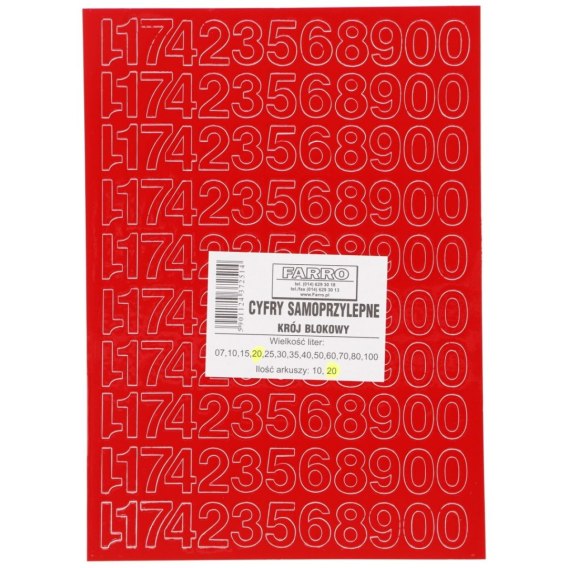 Farro Cyfry samoprzylepne czerwone Farro