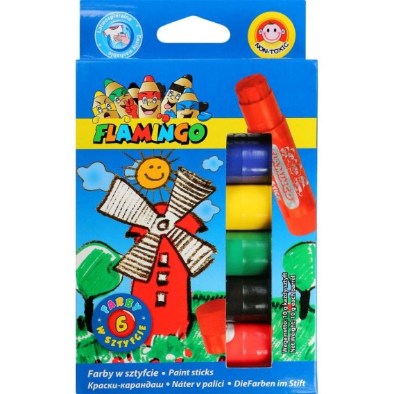 Flamingo Farby plakatowe wykręcane, w sztyfcie kolor: mix 6 kolor. Flamingo (FS6R)