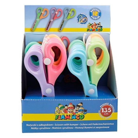 Flamingo Nożyczki dla dzieci bezpieczne z osłoniętym ostrzem z odbojnikiem 13,5cm