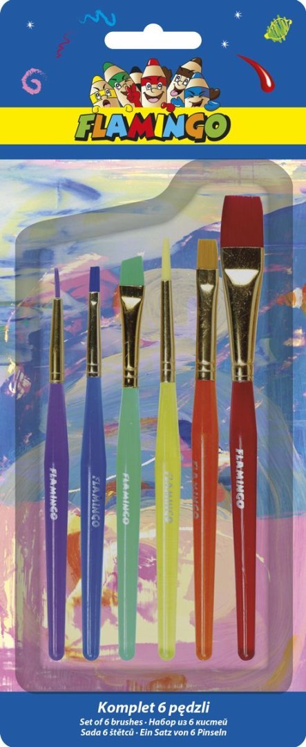 Flamingo Pędzel akrylowy uchwyt zestaw 6 szt. nr mix Flamingo (PS-03)