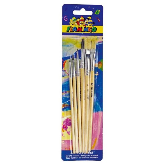 Flamingo Pędzel drewniany uchwyt zestaw 6 szt. Flamingo (PS-02)