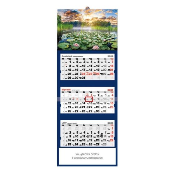 Jotan Kalendarz ścienny Lilie wodne tróijdzielny 320mm x 855mm Jotan (T50)