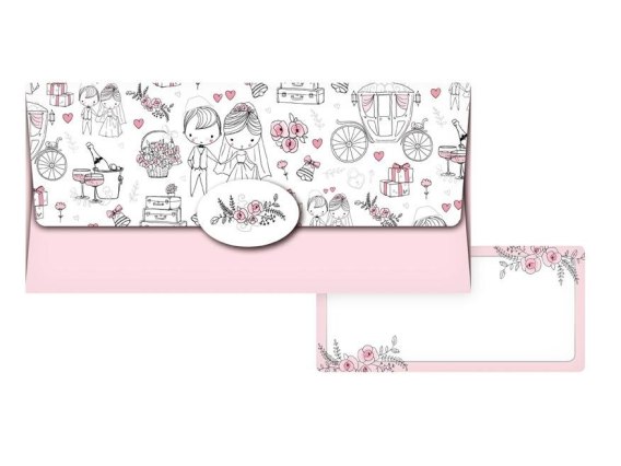 Koperta podarunkowa. Wewnątrz znajduje się ozdobna karteczka, na której można napisać życzenia. Każda koperta jest zapakowana osobno w folię z zawieszką euro. Wymiar: 180mm x 85mm x 2mm (szer. x wys. x gł.) Wyprodukowano w UE.