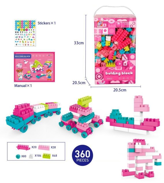 Lean Klocki konstrukcyjne różowe 360 el. Lean (23508)