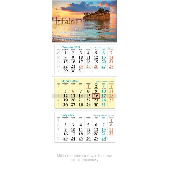 12 cm), z bigowaniem; brak możliwości nadruku pomiędzy kalendariami