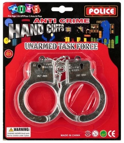 ^Ostrzeżenia! Nieodpowiednie dla dzieci w wieku poniżej 3 lat. Zawiera małe elementy lub istnieje możliwość oddzielenia małych elementów. Ryzyko połknięcia, udławienia, uduszenia. Ze względu na stopień skomplikowania zabawki rekomendowany wiek 8+. Przechowywać w miejscu niedostępnym dla dzieci poniżej 3 lat. Usunąć opakowanie przed przekazaniem dziecku zabawki. Opakowanie nie jest zabawką - chronić przed dziećmi. Prosimy zachować to opakowanie, gdyż zawiera ważne informacje. INSTRUKCJA: W celu zatrzaśnięcia kajdanek odchyl ruchomą część, a następnie zatrzaśnij ją w części stałej. W celu otwarcia kajdanek przekręć kluczyk zgodnie ze wskazówkami zegara, a nastepnie odchyl ruchomą część kajdanek.