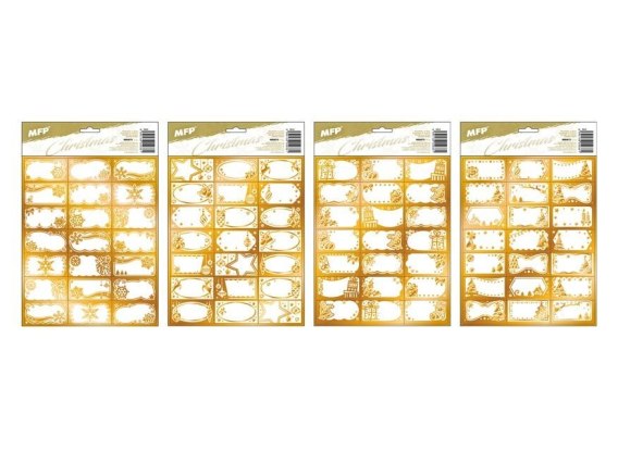 Naklejki na prezenty złote 200x300mm/21szt. Zapakowane w woreczku z zawieszką. Waga: 0.02 kg