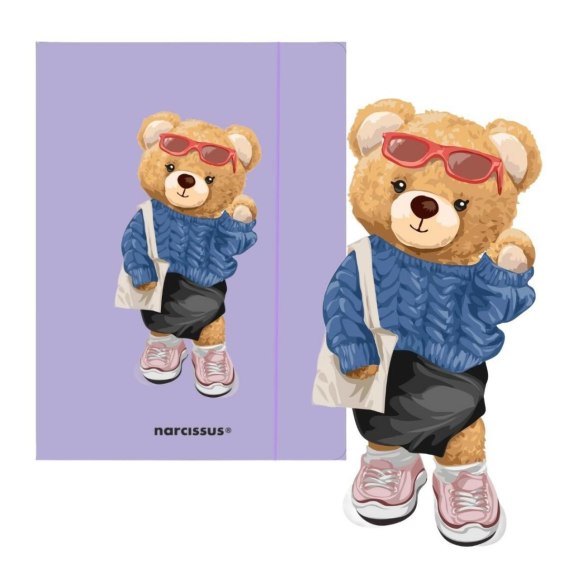 Narcissus Teczka kartonowa na gumkę Teddies& Misia A4 fioletowy 270g Narcissus