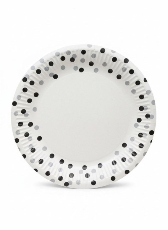 Paw Talerz jednorazowy Confetti Silver-Black papier śr. 230mm 8 szt Paw (PPL8000508)