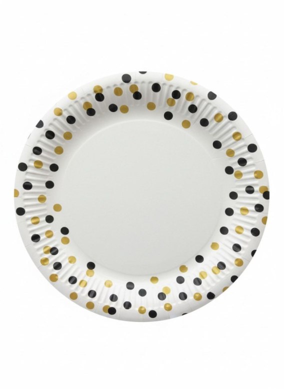 Paw Talerz jednorazowy Confetti gold-Black papier śr. 230mm 8 szt Paw (PPL8000509)