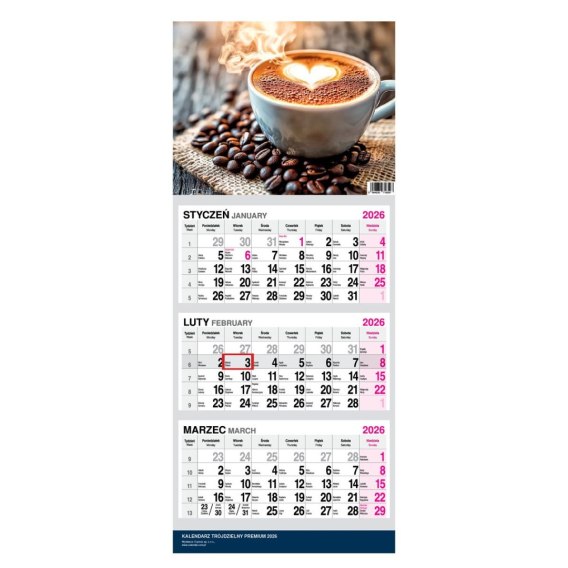 Kalendarz Trójdzielny Premium jest niezastąpionym narzędziem dla każdego, kto pragnie mieć swoje terminy pod pełną kontrolą. Kalendarz został starannie zaprojektowany, by oferować nie tylko pełen przegląd bieżącego miesiąca, ale również umożliwiać łatwe śledzenie poprzednich wydarzeń, dzięki prezentacji trzech miesięcy na jednej stronie - bieżącego i dwóch poprzednich (Układ kalendarium: 3 miesiące - 1 kartka). Przesuwane okienko umożliwia intuicyjne zaznaczanie i śledzenie poszczególnych dni, co czyni go wyjątkowo praktycznym w codziennym użyciu. Kalendarz jest wyposażony w wytrzymałą dziurkę, która umożliwia proste i bezpieczne zawieszenie go na ścianie, gwarantując, że będzie on zawsze pod ręką i w zasięgu wzroku. Idealnie sprawdzi się zarówno w domowym gabinecie, jak i w dynamicznym środowisku biurowym, gdzie szybki dostęp do informacji o dacie jest niezbędny. Dodatkowo, kalendarz jest opakowany w folię w celu ochrony przed uszkodzeniami podczas transportu, zapewniając, że dotrze do Ciebie w idealnym stanie. Produkt jest dostępny w formacie 310 x 790 mm, co zapewnia jego czytelność i wygodę użytkowania.