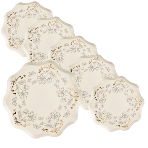 Talerzyki -KOLOR KREMOWY - beżowe KWIATY / 6 sztuk