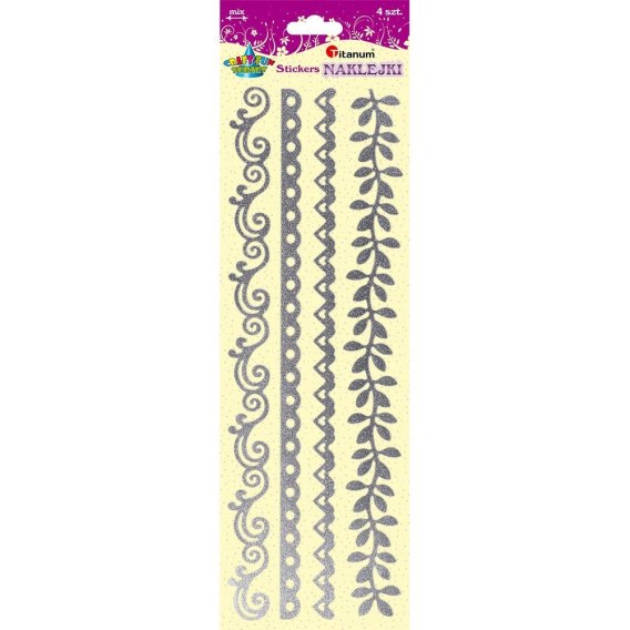 - naklejki brokatowe - kształty: dekor - kolory: srebrny - 4 szt. - długość: 33 cm 330 mm