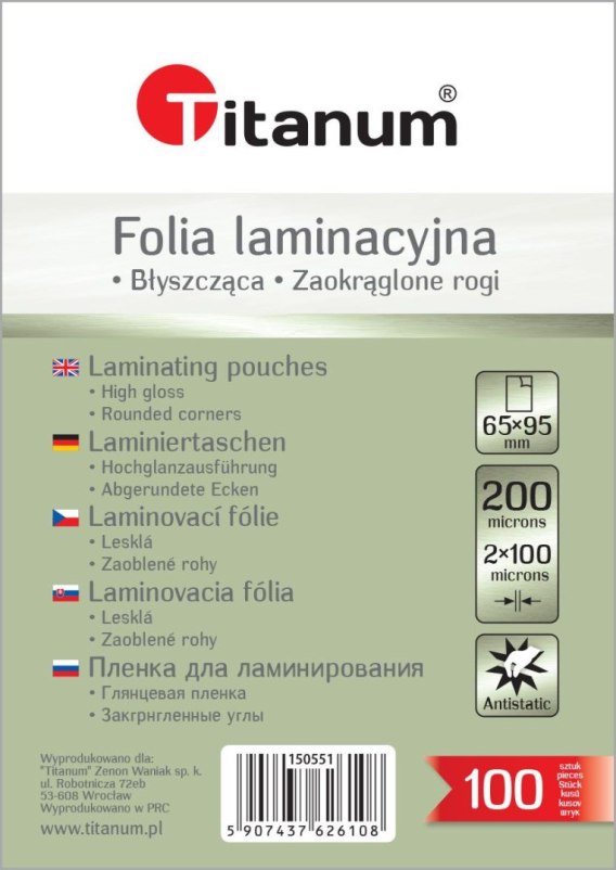 Titanum Folia do laminowania przezroczysty 100mic. [mm:] 65x95 Titanum