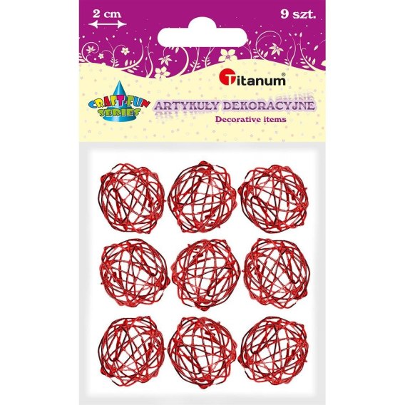 Kule z drutu, średnica 2 cm, czerwone. 9 szt.