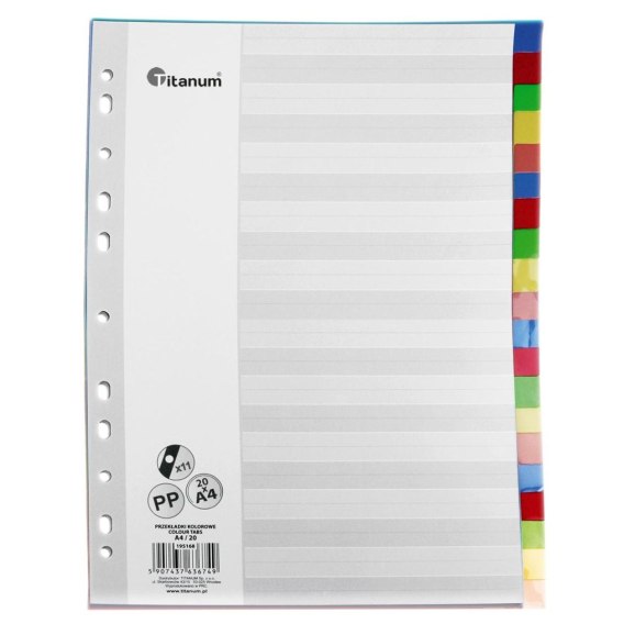 Titanum Przekładki do segregatora PP Titanum A4 20 kartek indeksy kolorowe (IK20)