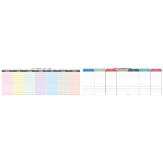 Planer tygodniowy z naklejkami sprawi, że planowanie codziennych obowiązków będzie dziecinnie proste. Wymiary planera sprawiają, że nie zajmuje dużo miejsca. 52 arkusze. Miejsce na zapisywanie planu tygodniowego i ważnych przypomnień. Doskonała ozdoba Twojego biurka i praktyczny organizer. Wymiary: 29,8x10,5 cm 52 arkusze na każdy tydzień roku 2 wzory